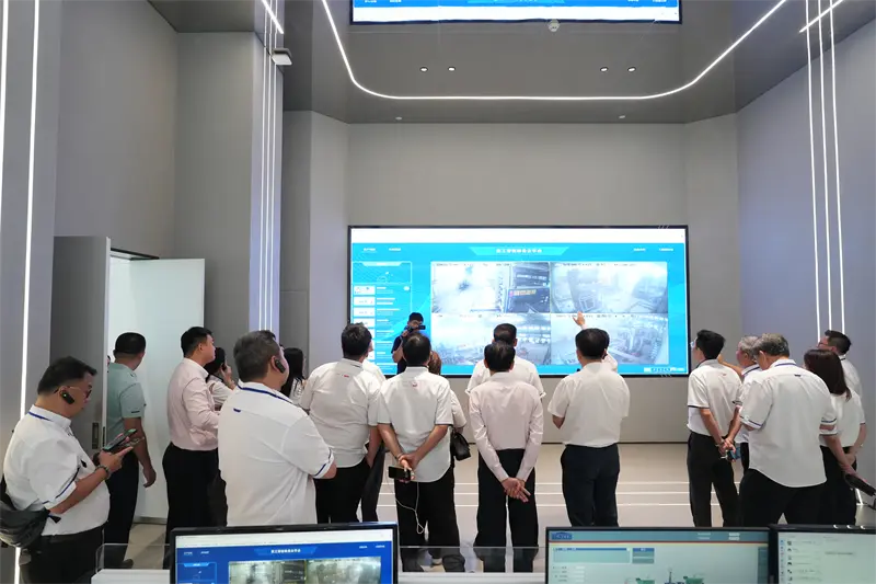 Delegația a zăbovit în „Galeria de timp QGM”, unde a aflat despre istoria dezvoltării Quangong Machinery Co.,Ltd, produsele de bază și avantajele tehnologice prin proiecții holografice și arhive fizice. Fiind unul dintre primul lot de întreprinderi de demonstrație campioane în producție desemnate de Ministerul Industriei și Tehnologiei Informației, Quangong Machinery Co.,Ltd. se mândrește cu o vastă expertiză tehnică și experiență pe piață în domeniul echipamentelor de automatizare a blocurilor ecologice. Produsele sale nu numai că dețin o poziție semnificativă pe piața internă, dar sunt și exportate în peste 120 de țări și regiuni din întreaga lume, câștigând o reputație internațională largă. Președintele Liu Guoquan s-a concentrat, de asemenea, pe studiul de caz de integrare a tehnologiei în urma achiziției de către companie în 2016 a Zenith, Germania. El a discutat despre modelul sinergic al „Tehnologiei germane de precizie + Viteza de fabricație inteligentă chineză” cu Fu Binghuang, președintele Quangong Machinery Co.,Ltd, care l-a însoțit.