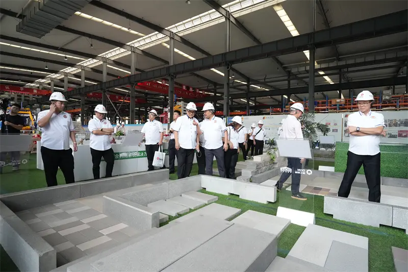 În zona de afișare a mostrelor de cărămidă, diverse cărămizi permeabile, cărămizi imitație de piatră și materiale de construcție reciclate de deșeuri solide au atras atenția grupului vizitator. Fu Binghuang, președintele Quangong Machinery Co.,Ltd, a explicat că, prin cercetare și dezvoltare tehnologică, Quangong Machinery Co.,Ltd. transformă deșeurile precum deșeurile de construcții și deșeurile de deșeuri în materiale de construcție cu valoare adăugată ridicată, ecologice, eliminând anual peste 10 milioane de tone de deșeuri solide. Președintele Liu Guoquan a inspectat rezistența și permeabilitatea mostrelor de cărămidă, lăudând practica QGM de „transformare a deșeurilor în comori” ca „model al economiei circulare”.