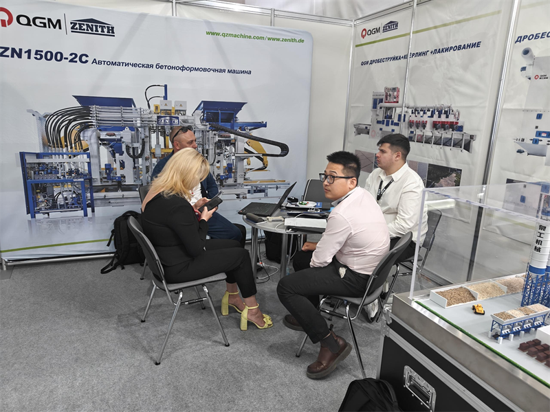 În timpul expoziției, echipa de marketing localizată a QGM din Rusia a oferit servicii profesionale de consultanță pentru produse și analiză de caz de succes clienților din industrie care au venit la stand, demonstrând puterea tehnică profundă a QGM și experiența practică bogată în industria betonului. În același timp, în timpul procesului de contact, echipa de marketing a QGM a împărtășit, de asemenea, dezvoltarea industriei de fabricare a cărămizilor, tendințele pieței și experiențele de succes cu clienții din industrie în vizită.