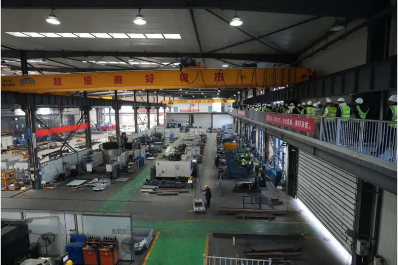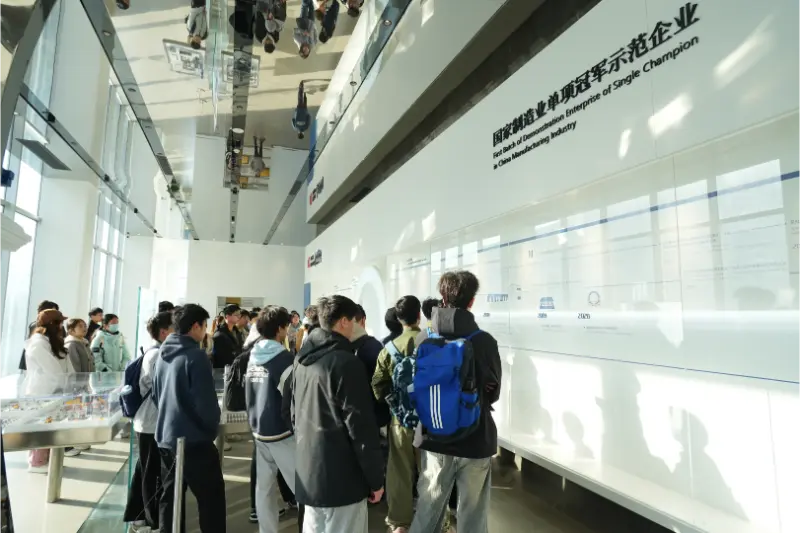 Ulterior, profesorii și studenții au vizitat atelierul de prelucrare, intrând în primele linii ale producției inteligente. În atelier, centrele de prelucrare CNC și liniile de asamblare automatizate au funcționat cu viteză mare, brațele robotizate completând cu precizie diverse operațiuni, iar sistemul de producție digital a afișat progresul producției și datele de monitorizare a calității în timp real, demonstrând efectul sinergic al unei „fabricii verzi” și al „atelierului inteligent”. Experții tehnici ai companiei au condus profesorii și studenții prin întregul proces, de la prelucrarea materiilor prime până la asamblarea echipamentelor, concentrându-se pe explicarea aplicării tehnologiilor cheie, cum ar fi interconectarea echipamentelor CNC și detectarea precisă a stării producției. Elevii s-au implicat activ cu experții tehnici, discutând probleme precum optimizarea procesării și tehnicile de întreținere a echipamentelor, creând o atmosferă puternică de învățare la fața locului.