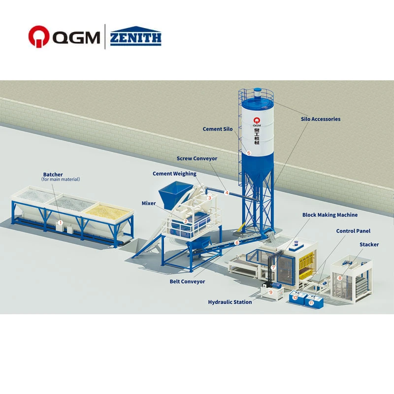 Mașina automată de fabricare a blocurilor este o mașină folosită în principal pentru a produce noi blocuri de materiale de perete, care este unul dintre echipamentele de fabricare a cărămizilor. Produsele produse de Automatic Block Making Machine pot fi procesate în diferite materiale noi de perete folosind materiale industriale deșeuri, cum ar fi nisip, piatră, cenușă zburătoare, zgură de cărbune, gangă de cărbune, zgură de steril, ceramisit, perlit etc. Automatic Block Making Machine adoptă un sistem de control PLC complet automat cu o interfață interactivă om-mașină. Sistemul de control este configurat cu control logic sigur și are funcții de afișare a programului de producție și a diagnosticării defecțiunilor. Îmbunătățește eficiența producției și reduce nevoia de intervenție manuală, făcând întregul proces de producție mai inteligent și mai automatizat. Prin înlocuirea diferitelor matrițe, mașina automată de fabricare a blocurilor poate produce blocuri de perete de diferite specificații și forme, inclusiv, dar fără a se limita la, cărămizi poroase, blocuri goale, borduri, cărămizi de pavaj, cărămizi de iarbă, cărămizi de șah și alte produse din ciment.